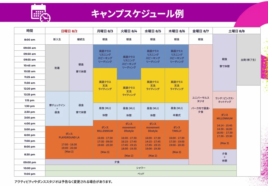 - 土曜:アクティビティ(ユニバーサルスタジオ)